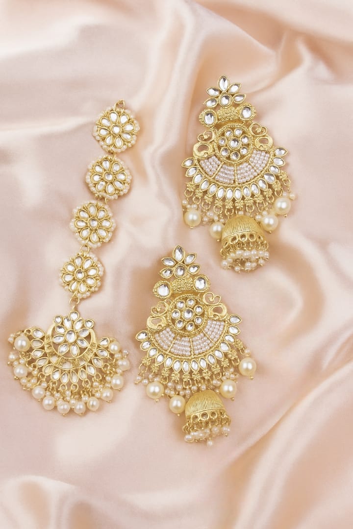 Royal Kundan Pearl Earring & Maang Tikka Set